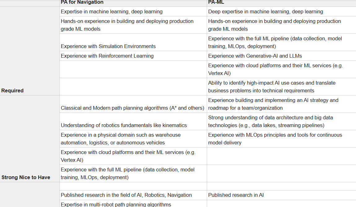 2 Openings - see side by side look at 1 Architect (Navigation focused for Robotics) and 1 ML Architect.